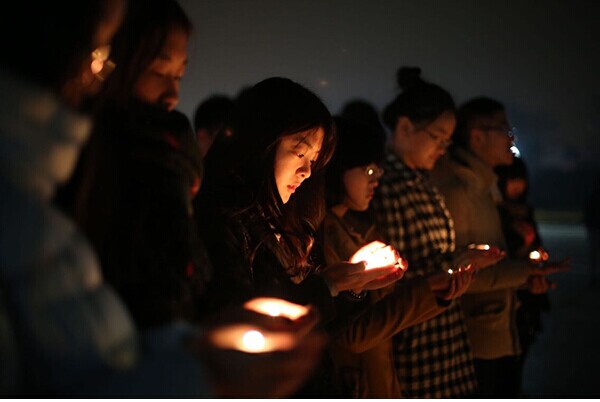 12月11日晚,星际娱乐场 仙林校区图书馆广场闪烁着点点星火,星际娱乐场 学生用蜡烛摆起了“1937.12.13”的字样,对南京大屠杀遇难同胞表示深切悼念。 星际娱乐场 近20余名同学自发组成了“南京大屠杀遇难同胞”的公祭志愿者队伍。活动现场,在志愿者代表的叙述中,大家一同沉痛地回顾了1937年南京大屠杀那段痛苦的历史,并手捧蜡烛为逝去的亡灵集体默哀一分钟。随后,大家在悼念展板墙上写下了自己对历史的感悟,对民族振兴的信念。“勿忘国耻,圆梦中华...