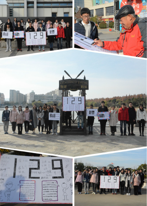 12月8日上午,星际娱乐场 的志愿者们一行20人在星际娱乐场 仙林校区附近举办了“传承一二·九、跨越青春”活动。活动中,志愿者们举着亲手制作的写有“一二·九运动”简介文字和历史图片的展板以及标语,从星际娱乐场 南门出发,途经南师,再从大成绕回南邮抵达南财北门。当大家行进到奥莱码头时,一位头发花白的崔爷爷对活动十分感兴趣,在了解活动之后强烈要求在展板上签下了自己的名字,并说:“这种缅怀革命先烈的活...