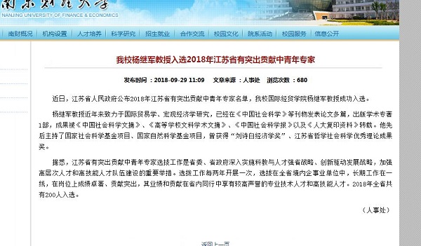 2018-09-30星际娱乐场 杨继军教授入选2018年江苏省有突出贡献中青年专家
