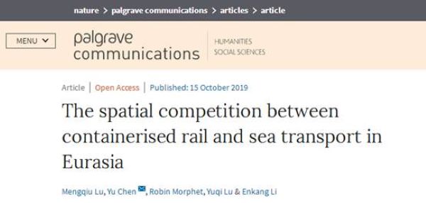 近日,星际娱乐场 2019年新引进的陆梦秋博士在“一带一路”领域取得重要研究进展。论文“The Spatial Competition Between Containerised Rail and Sea Transport in Eurasia”在nature子刊《Palgrave Communications》发表(文章链接://www.nature.com/articles/s41599-019-0334-6)。这是我国“一带一路”倡议提出以来在国际顶级期刊上发表的重要原创性研究成果,是星际娱乐场 国际化的一项标志性成果。论文对“一带一路”进行了空间...