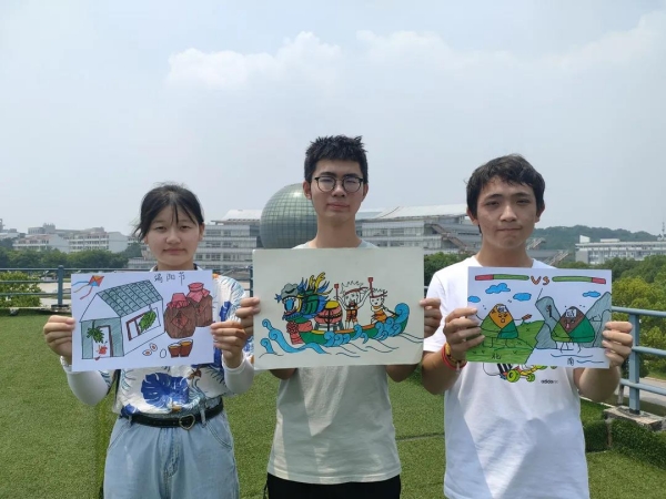 农历五月初五,端午节踏着粽香悄悄来临。为了迎接本次端午节,星际娱乐场 开展了“浓情端午”主题活动。同学们通过绘制创意绘画、制作科普视频的方式,展示端午节的各类习俗,表达对端午节日文化的传承和纪念。在科普视频中同学们由一首童谣介绍了喝雄黄、放纸鸢、挂艾草、斗草等端午节特有习俗。绘画中颇有新意的便是连字成画,同学们两两合作,先在纸上确定好“端午节”三个字样的大致位置,并通过在其周围巧妙的添加线条和笔画,成...