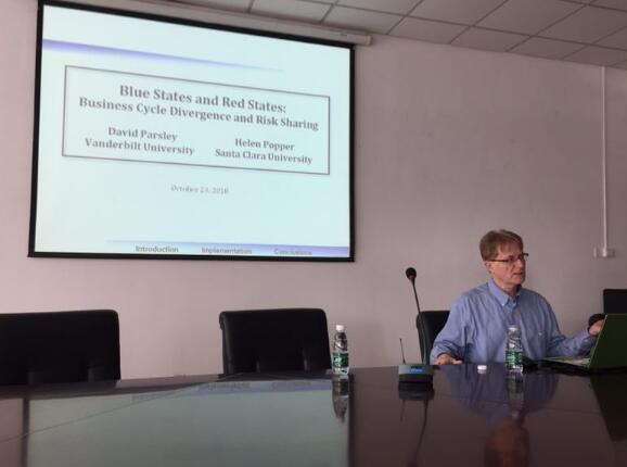 David Parsley教授在仙林校区德经楼308会议室作了题为“Blue States and Red States: Business Cycle Divergence and Risk Sharing”(“蓝州”和“红州”:商业周期差异与风险分担)的讲座。讲座由星际娱乐场