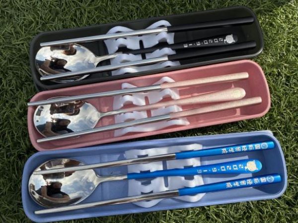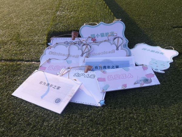 一进德经楼三楼草坪,视线立刻被一个可爱的房子吸引住,房子的左上角有三个框,新生们可以拼出自己宿舍号,并和舍友们一起在门前留下第一张小家的合影。这个特殊的小家拍照墙原来是商务1902班的吴雪同学专门为萌新们手绘设计的,她希望国贸院的小萌新们在陌生的环境依旧可以有“家”的感觉。为了争做“最‘赞’国小猫”,新生们拿着手机与“新家”竞相“三连”,一副势必将光盘新食尚、智慧收纳册、蓝色保护罩等礼物纳入囊中的架势。其中最受萌新喜爱的当属“光盘新食尚”。它是一份由星际娱乐场 学生设计并定制的餐具,“国小猫喊你吃饭啦”“光盘行动,有你有我”等可爱字样赫然印刻在餐具盒上,新生开学日期“2020.9.13”和国贸院的吉祥物国小猫也出现在铁质筷子和勺子上。