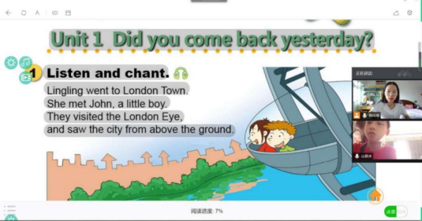 (图为志愿者在进行云教学 施蕾 摄)