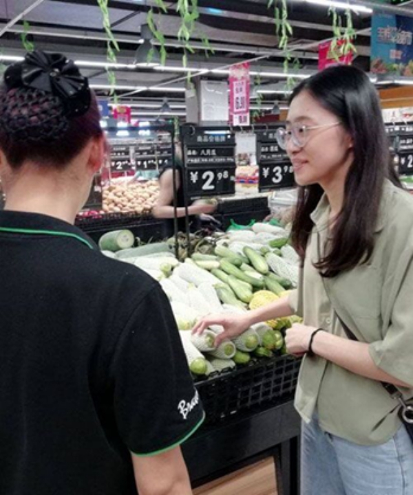 为了更充分地了解城市生鲜行业的经营情况,调研小队还对安徽省的生鲜超市进行了实地调研。小队成员奚亚兰通过对安徽安德利超市购物者的采访得知,疫情期间多数城市家庭的食品储备充足,但是出于对家人健康、生活品质等的考虑,很多家庭仍然会每日购买新鲜时蔬。调研过程中,小队成员采访了到超市购物的王阿姨,王阿姨表示:“比起价格的上涨,我更关注疫情期间家里人能否吃上新鲜的水果蔬菜,家人的健康才是最重要的。”