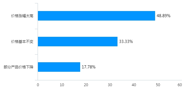 针对于生鲜产品价格变动情况,有近一半的人表示价格涨幅太高,约有33%的人表示价格基本不变,同时还有少部分人表示有部分产品的价格下降了。问卷结果说明此次疫情对生鲜的价格造成了一定程度的影响。