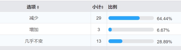在实地调研结束之后,调研小队对线上调查问卷的结果进行了分析。首先是人们疫情期间的购物方式,调研数据显示,有53.33%的人在疫情期间通过农贸市场购买生鲜产品,28.89%的人通过大型生活超市购买,剩下不到20%会通过外卖平台或生鲜电商平台购买。说明在疫情期间,农贸市场和大型生活超市仍是人们购买生鲜产品的主要地点,人们的购买习惯并未发生较大改变。
