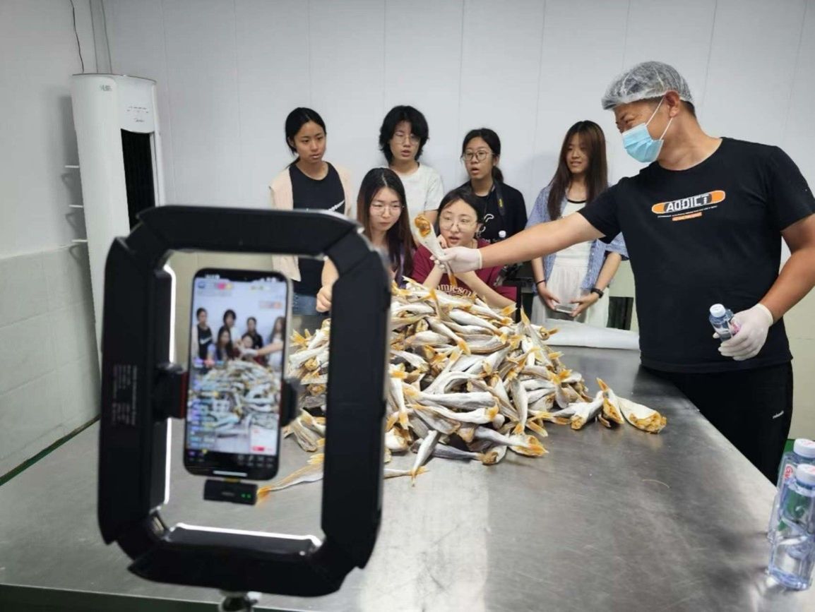 团队成员在网红直播间开展滨海特色农产品宣传