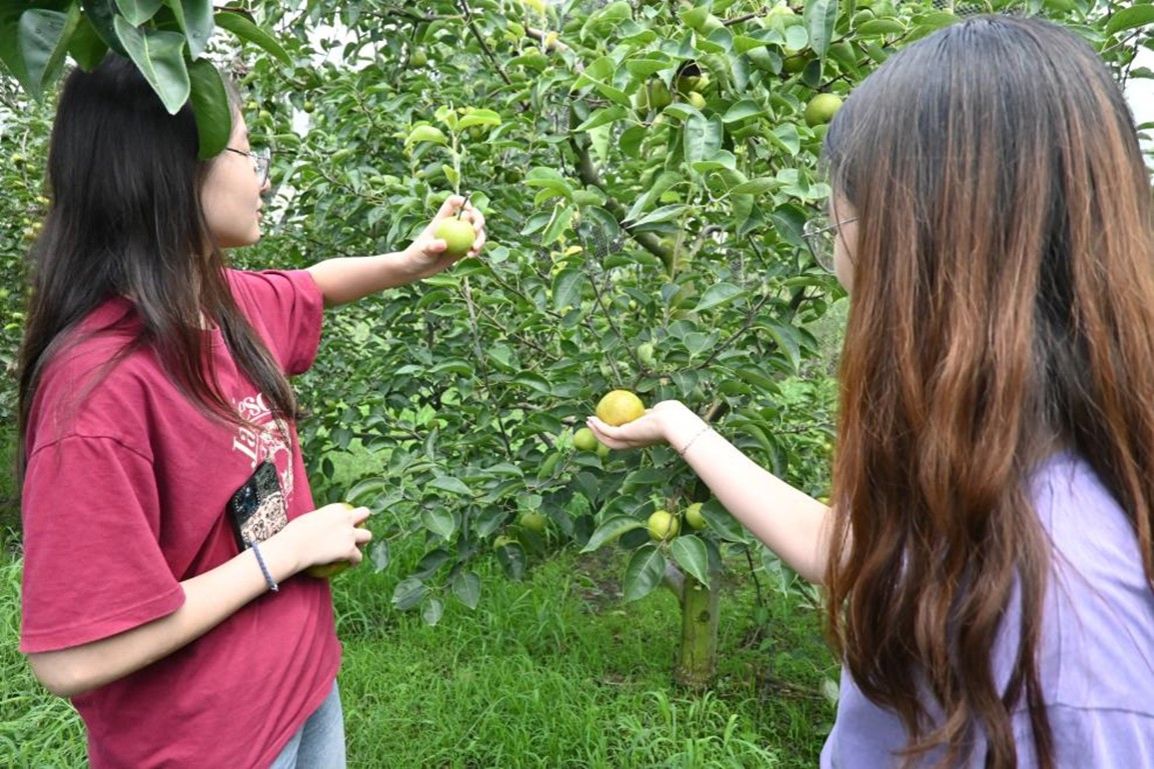 在海峰村党支部书记陈国林的陪同下,调研团队来到了海峰村特色梨园。团队成员们观察并记录了不同种类的梨的成熟周期以及口感特点,通过面对面的交流以及实地的考察,成员们对当地梨这一产品的销路以及产业发展变化取得了比较全面的了解,并通过研究和讨论,对梨这一产业的未来电商发展提出了可行性建议。