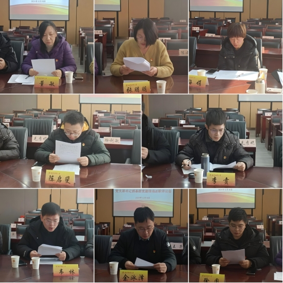 述职会上,八个党支部书记围绕2024年度党建重点工作,结合所在支部工作实际,分别聚焦本年度述职重点内容,上一年度整改情况以及述职“必答题”三个方面依次进行述职。周亚芳书记从发挥本科生党员先锋模范作用、组合式推进“品牌效应”、持续跟进品牌建设,答好支部“必答题”等不同方面对各党支部书记述职情况进行了“一述一评”,点准问题,指出存在的薄弱环节,提出整改建议。