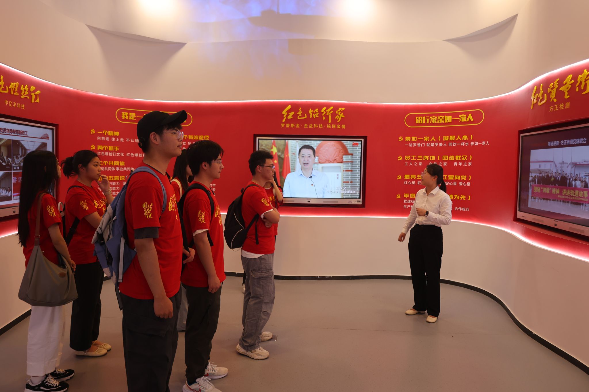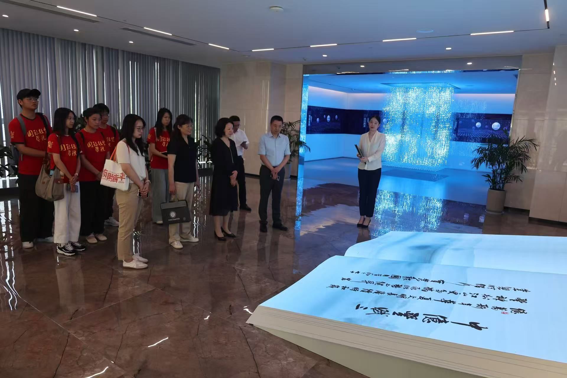 上午,实践团探访了中亿丰城市会客厅,参观了解了企业秉持“立足主业的匠心深耕、创新突围的模式探索、合力攻坚的三造融合、一以贯之的社会责任”,深入践行什么时候都不能忘记发展的初心使命,以城市建设运营综合服务为主线,聚焦工程建设、非遗传承、数字创新三大领域,打造运河沿线地标,建设优质境外工程,以数字化智能技术赋能各民族非遗文化新生,“建造筑基、制造强体、智造赋能”三造融合文化传承与时代动能的典型案例;深入了解了中亿丰积极构建“红石榴”党建品牌矩阵,培育“红色砼心圆”“红色铝行家”等民族团结企业样本,凝聚满、回、蒙古等14个民族员工的文化认同共创《中亿丰赋》,淬炼“运河精神”与“石榴籽精神”交融的精神纽带的生动实践。