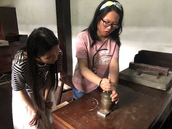 小队第一天探寻了杭州目前最大的中医馆胡庆余堂,该药馆整个建筑形制宛如一只仙鹤,寓示“长寿”,是由著名红顶商人胡雪岩创建于一八七四年,已有百余年历史。在参观胡庆余堂内的中药博物馆时,讲解人员向队员们介绍到,“胡庆余堂的名字出自《易传•文言传•坤文言》,原句是积善之家,必有余庆,积不善之家,必有余殃。面向耕心草堂悬挂的‘戒欺’横匾,为胡雪岩亲自所写,诉出存心济世这一根本宗旨。”为了让游客更好地了解中医药文化,胡庆余堂专门开放了中药研磨制作的体验区,并有老医师向游客展示手工泛丸等古法制药过程。