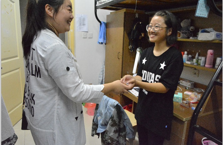 中秋节晚上,星际娱乐场 2016级辅导员张东霞老师和寻访月饼的学生一同走进新生宿舍,与新生们品月饼、聊军训话中秋。在看到老师和月饼时,张同学紧张地说,“真的很感谢老师和学姐学长们过来送月饼,冰皮月饼真的是好吃到哭,就和在家吃的感觉一样!”