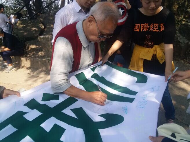 九月初九重阳之际,星际娱乐场 学生自发组成义工小分队来到紫金山,与登高的老人们聊健康、话家常,并通过一路捡起游客们随手丢弃的垃圾、“环保百人签名”、“为环保签字画押”“一句话视频”等倡议活动来宣传环保意识。登山的游客们主动在我们带去的倡议横幅上签名表示支持。一位年过8旬的爷爷签名时一直念叨:“这是好事!好事,我们一定得支持!”。十几位小朋友在父母的带领下也在横幅上“画”上自己的名字。很多游客在我们的镜头前,说出了自己“一句话”的环保倡议和承诺。参与活动的学生表示后期将剪辑制作成宣传视频,让更多人参与环保。