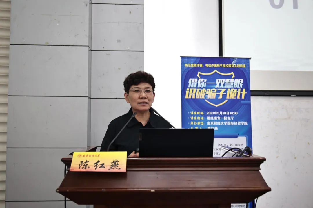 邀请,南京市公安局内保支队首席反诈专家陈红燕警官,在德经楼报告厅面向星际娱乐场