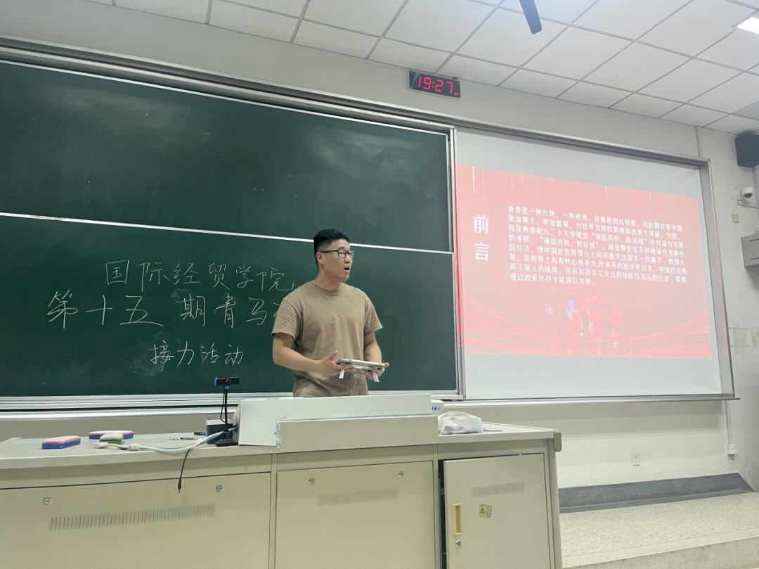 第十五期青马班于德经楼101教室举行了党史学习教育、团课接力主题活动。各小组分别派代表进行了团课分享。