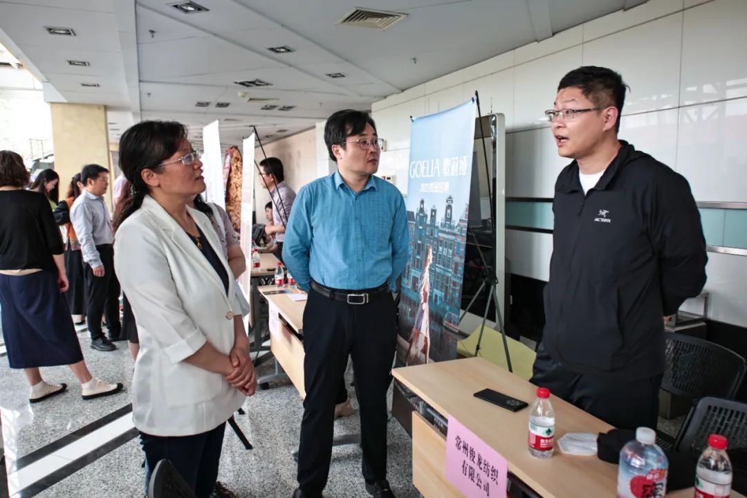 在招聘会现场,周亚芳书记向参与招聘会的众多用人单位的到来表示由衷感谢和热烈欢迎,为了深入了解招聘会现场情况,周书记询问了常州俊龙纺织有限公司的招聘情况。企业相关招聘负责人表示公司主要业务是完成客户订单,侧重于服装纺织产品的定制而非传统意义上的纺织企业。当谈及招生要求时,他表示招聘看中的是个人能力,要求学生能向企业充分展现个人价值,看重学生实践能力。在这次招聘会中大多数企业着重关注应聘者的社会实践能力,毕业生应该走向社会,接触社会,了解社会,把所学的理论知识应用于实践,在实践中提高个人素质,增强自我创新能力。