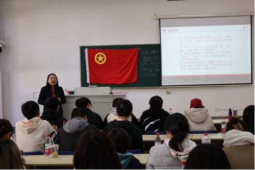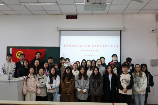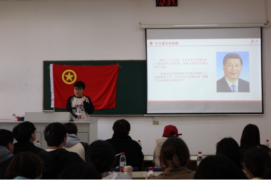 国实2101班开展了“高举旗帜坚定文化自信,勇担使命贡献青年力量”的主题团课,校团委书记张蔚伟、院分团委书记邓盛佳出席了本次团课。