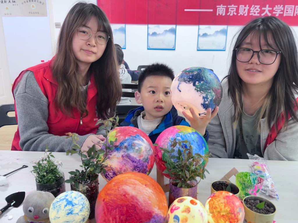 星星的孩子,虽在遥远星辰中独自闪烁,却以独特的光芒照亮我们的世界。志愿者们首先陪伴孩子们一起绘出自己心中的地球,并在绘画的过程中教导孩子们关于地球的小知识。小朋友们的想象力天马行空,画笔挥舞间,橙色的“百兽之王”版的地球,小果园似的地球……便出落得栩栩如生。欢声笑语中,一个个独具特色的地球灯诞生在志愿者和孩子们的手中。国实2201班的黄子涵同学感叹道:“孩子们的想象力独特而又奇妙,看到他们画出的地球,我越发感觉到地球的美丽,更加想要守护她。”