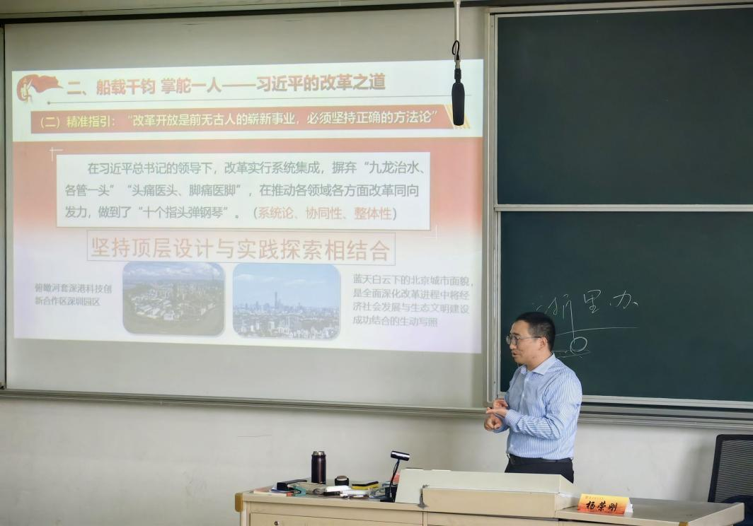 杨荣刚副教授授课,向同学们讲解党的二十届三中全会精神相关内容。