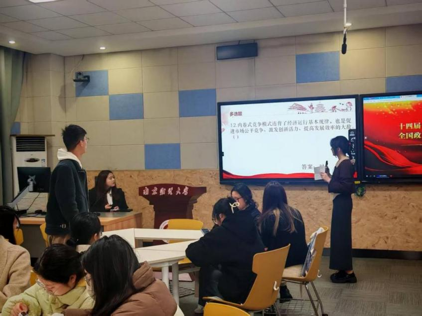 在博文楼101举办“大学青年说,两会新声代”两会精神专题学习活动。通过政策研读、主题研讨、知识竞赛等形式,引导国贸学子深入学习两会精神,推动专业学习与国家发展同频共振。