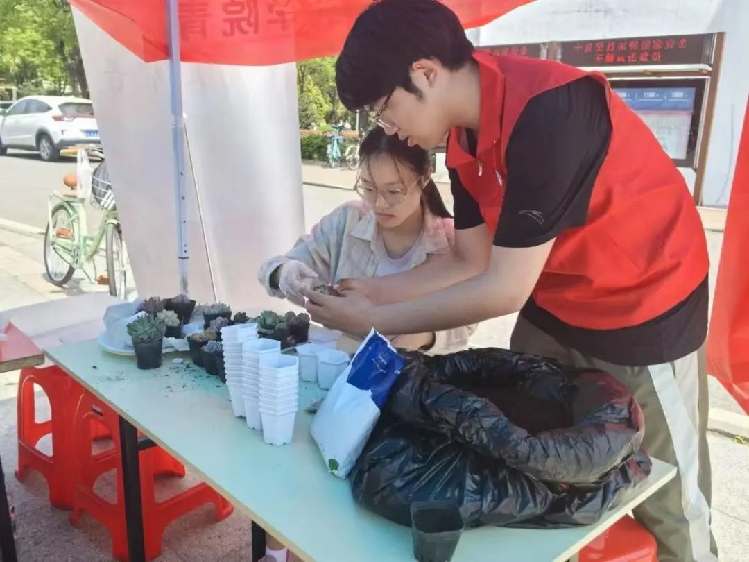 志愿者指导栽种多肉 王子豪摄