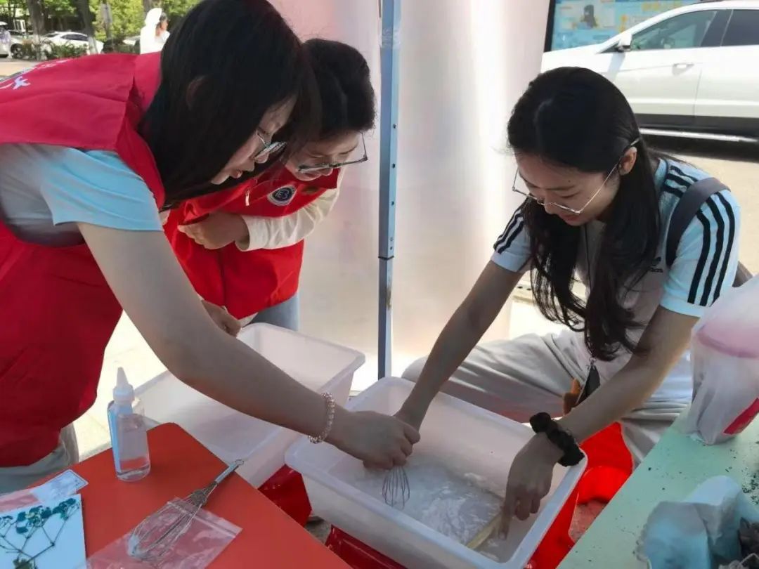 志愿者指导同学体验古法造纸 黄陈辰摄
