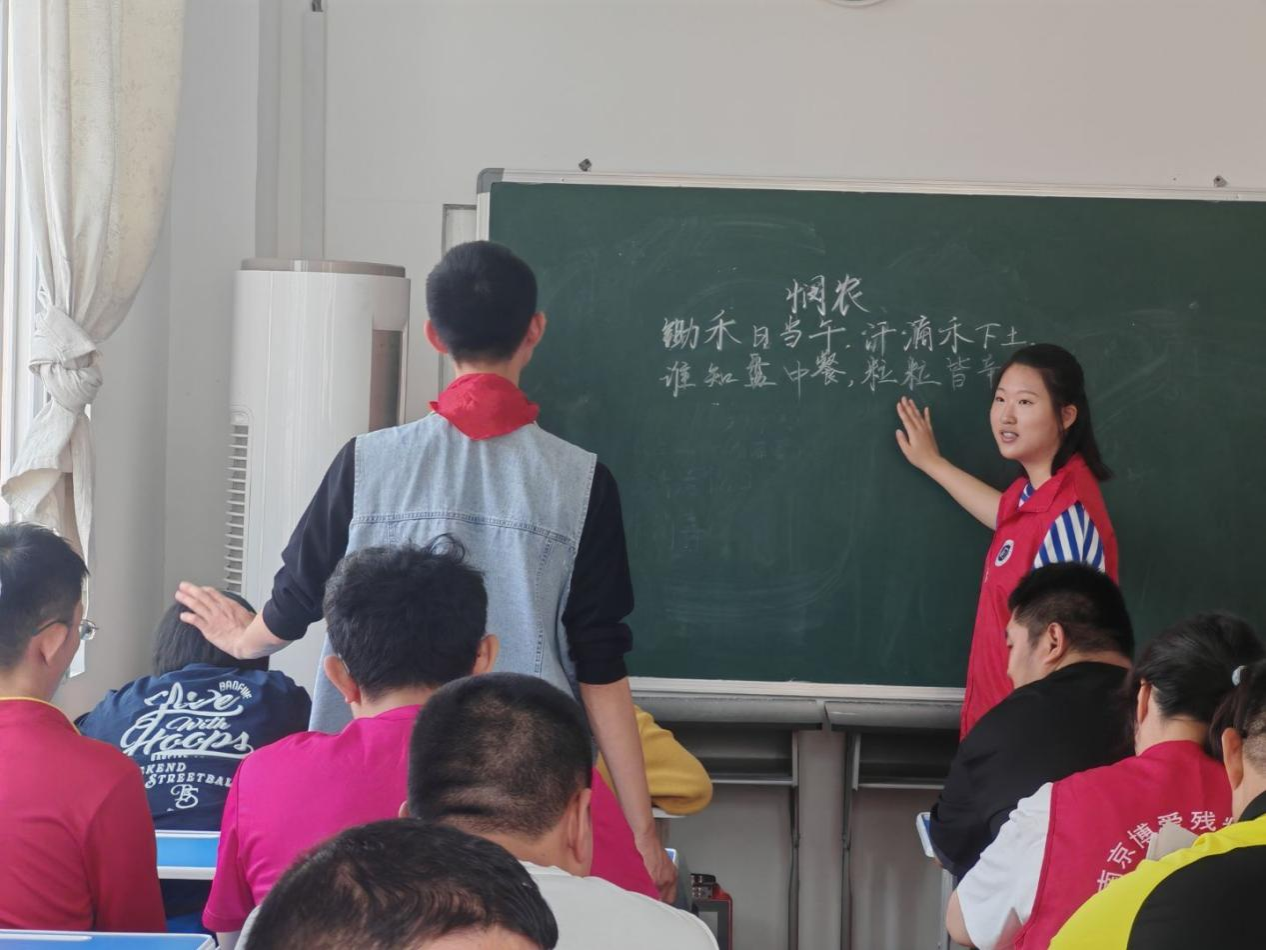 图为团队成员带领博爱之家学员学习诗词 徐天一 供图