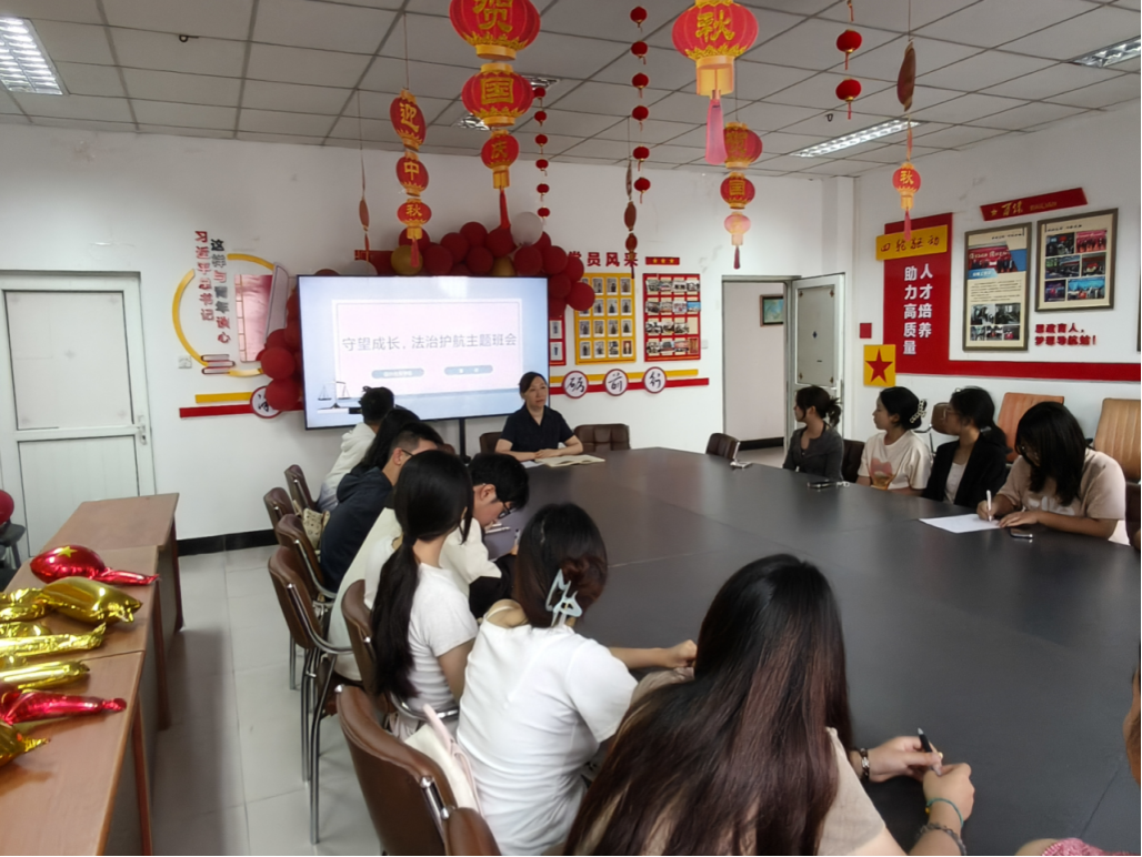 国实2401班在中苑10号站一站式学生社区召开“守望成长 法治护航”主题班会,班会由辅导员董敏老师主持。