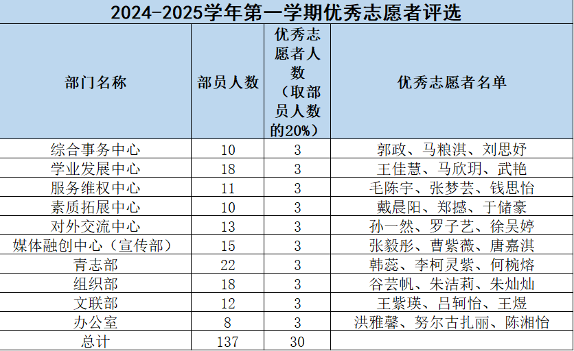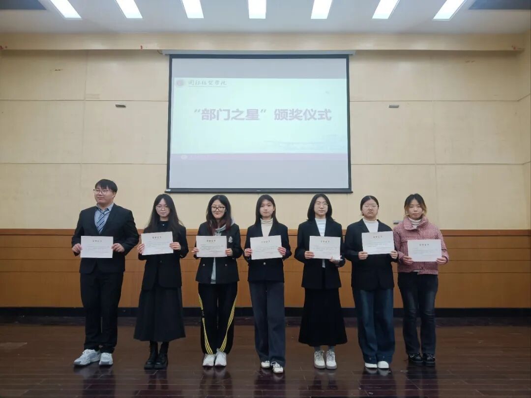 述职答辩环节结束后,大会正式进入颁奖环节。经过前期志愿者互评、负责人评议志愿者、主席评议负责人三个板块的人事考核,再经团委学生副书记与主席团综合审核确定,各部门共评选出优秀志愿者3名;部门之星方面,组织部、媒体融创中心各2名,其余部门1名。学生会主席团成员为获奖同学颁发荣誉证书,台下掌声阵阵,既是对获奖人员的热烈祝贺,也激励着全体学生会成员以先进为标杆,锐意进取、争先创优。