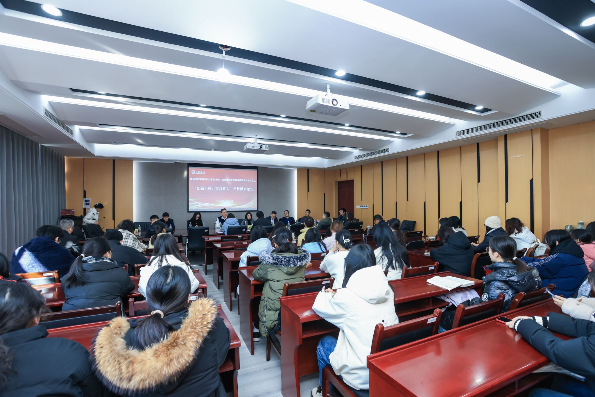 论坛上,粮食经济专业87级校友、中储粮江苏质检中心有限公司总经理袁华山,电子商务专业06级校友、江苏德墨忒尔投资有限公司总经理李磊,国贸99级校友、南京市如日方暾创业投资管理有限公司总经理燕啸啸等围绕自身职业成长经历,聚焦行业洞察、产教融合实践展开热烈分享,帮助国贸学子理解行业需求并规划未来。校友精彩观点迸发不断,在校学子提问互动不止。在热闹非凡的现场气氛中,历届国贸学子共同探索何以将个人发展路径与国家需要,行业需求相结合,走出南财人的独特发展道路。
