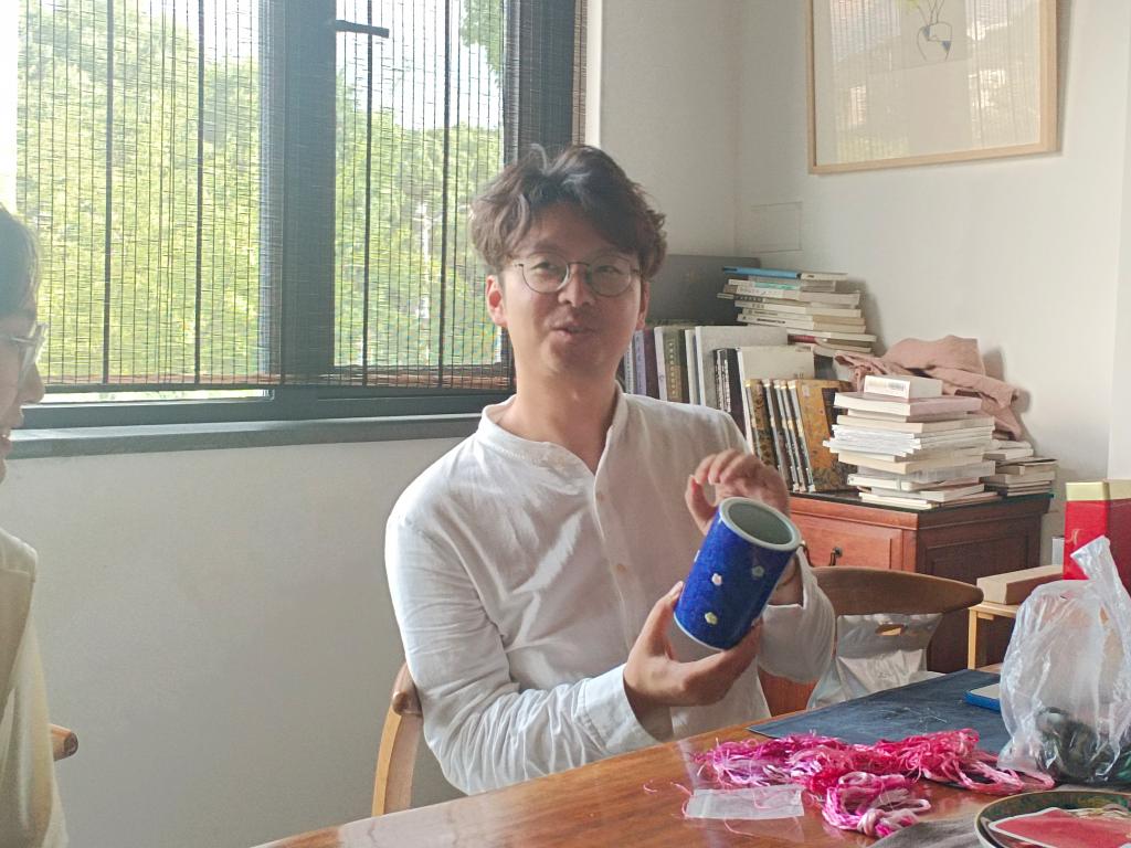 随后,团队与张雪老师进行座谈交流。张雪老师深入探讨了传统刺绣工艺与现代科学技术融合的挑战与努力。张雪老师指出,在融合过程中,精确计算和前期实验至关重要,以与清华大学实验室合作的苏绣作品《玉兰花开》和瓷绣为例,指出刺绣作品的数字化与机器学习应用、手工与机械化生产的成本对比,以及市场趋势的变化,都提示着行业需要适应技术变革和市场需求。团队了解了目前苏绣的创新探索和AI、自动化等现代技术结合,更加坚定目前团队依赖智能设计、针迹自动识别等现代技术配合苏绣技艺赋能残疾人社会融入和价值实现的可行性。