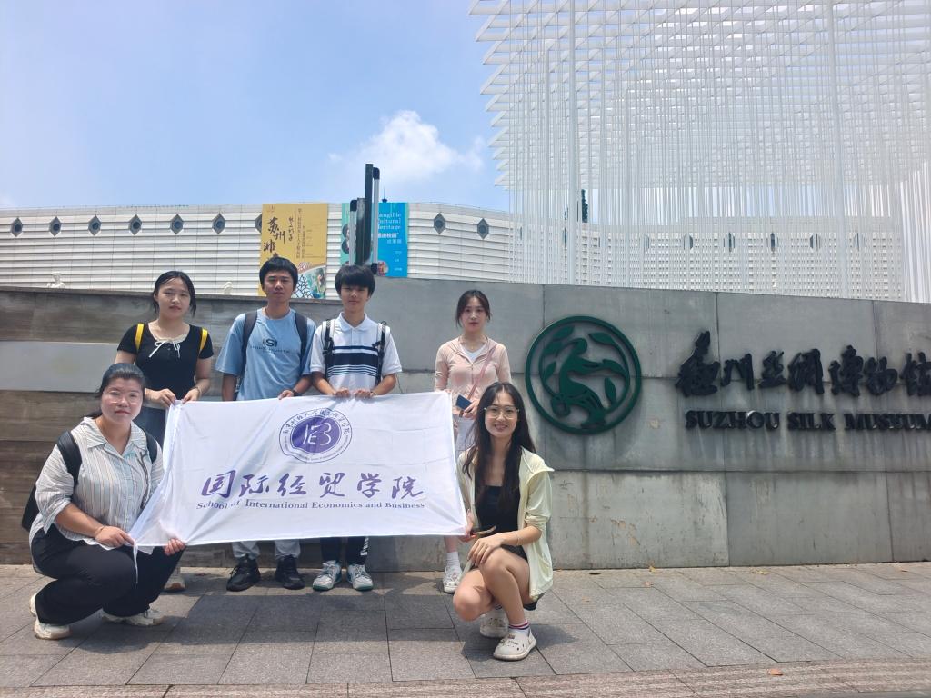 “丝绸柔软似流云,轻盈飘逸舞人间”,苏绣以丝绸为底料,使苏绣获得丝绸的柔美和光泽,还增添了刺绣的艺术魅力。苏州丝绸博物馆通过六大展区展示了从栽桑养蚕、丝织机械及其工作、丝绸产品全过程,它是丝绸文化的展示窗口,是团队成员全面了解苏绣的开端。在博物馆中,同学们近距离观察丝绸的织造过程展示、欣赏各种图案与织法,并观察到丝绸纹样数字化采集、丝绸纹样数字创新应用,这些数字化技术应用体现了现代丝绸产业的技术革新与产品创新。在浏览过程中,团队成员观察到环保染料的运用到智能织机的研发,体现了传统与现代是可以相互融合、共同发展的。