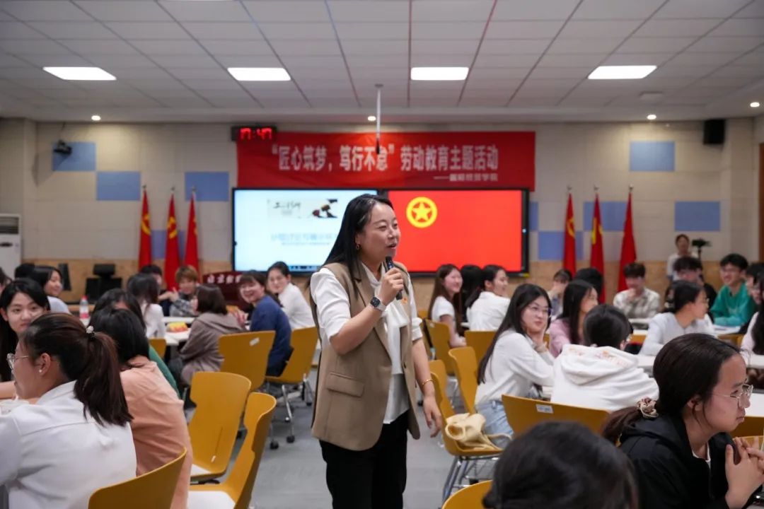 最后,校团委张蔚伟书记总结发言,她激励青年学子要崇尚劳动、热爱劳动,将青春与热血投入实干中,从大国工匠身上学习执着专注、精益求精、一丝不苟、追求卓越的精神品质,在劳动中践行使命担当,以奋斗之姿展现当代青年的良好精神面貌!