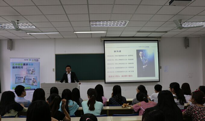 最后,林海斌代表汇中财富南京分公司向大家抛出橄榄枝——招收国贸、金融、市场营销等方向的暑期实习生,其中最诱人的条件就是实习提供为期两周的专业培训,包括新人入职培训、新人衔接培训、金融知识培训、销售技巧培训、职场礼仪伦理培训、性格测试分析等。另外,表现优秀者可在毕业后签订就业协议。