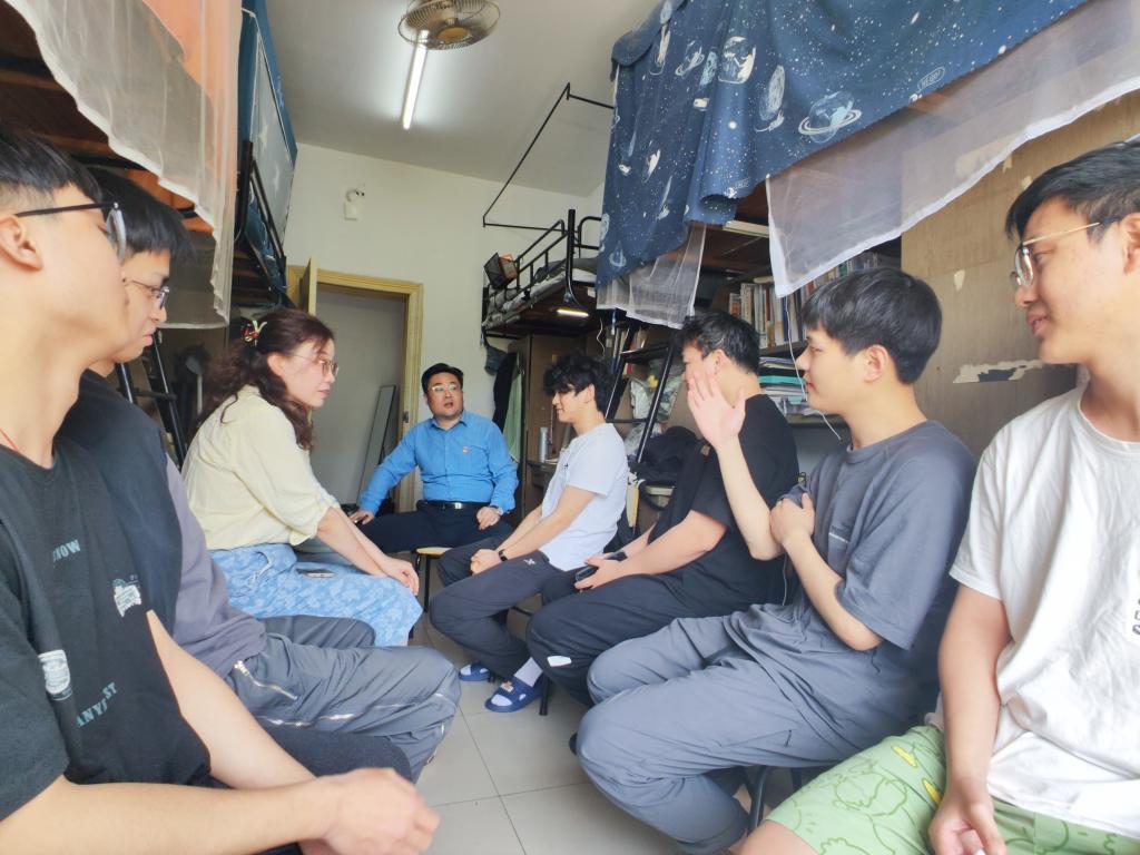 党委副书记、本科生第三党支部政治辅导员周进进走访结对学生宿舍——北苑15号站13栋606寝室,看望大四毕业生,并与同学们进行亲切的交谈,深入了解学生的就业升学等情况,为同学们送去温暖的问候和指导。