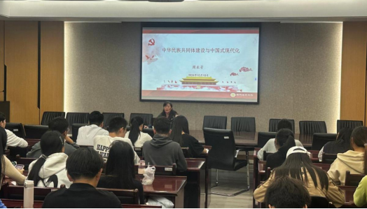 在德经楼308会议室举办“中华民族共同体建设与中国式现代化”专题党课。此次党课由院党委周亚芳书记主讲。