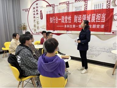 本科生第一党支部在“一站式”学生社区红石榴家园开展了题为“知行合一践党性,财经领域展担当”党课教育活动。此次党课由支部书记董敏授课。