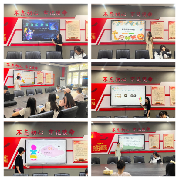 本科生第二党支部党员围绕小朋友们认知特点设计讲述7节财经思政类主题课程,研究生党员以专业评委身份,从内容适配性等三维度点评,针对术语简化等问题提优化建议,形成“备讲评”闭环,助力本科生锤炼教学能力。《小小理财家》以故事串联游戏,引导区分“需要”与“想要”,渗透理性消费思政理念;《水上大马路——京杭大运河》借历史案例讲贸易原理,融入传统文化与责任意识教育,实现知识传授与价值引领同频。其他课程也是精彩纷呈,既涉及财经认知,又兼顾思政启蒙。