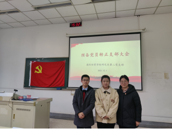 研究生第二党支部在德经楼106教室召开了预备党员转正支部大会,会议议题为讨论徐雅琪同志按期转为中共正式党员事宜。本次会议由党支部副书记张东霞老师主持,党支部书记李贲老师、支部全体党员出席了此次会议。