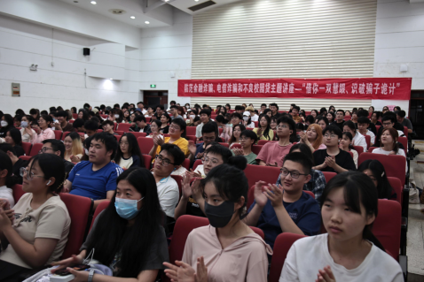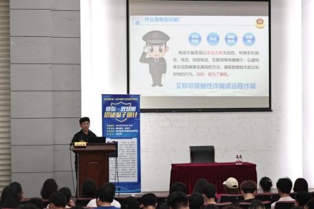 本科生在开展了主题为“借你一双慧眼,识破骗子诡计”的反诈专题讲座 。