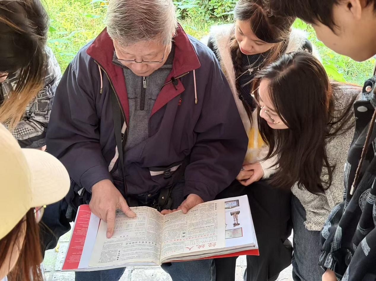 同学们围坐在张老身旁,翻看着泛黄的教学材料、课题申报书,参与创刊的《经统人》旧报上,张老填词的《红旗颂》还清晰可见...从在浙江大学求学时的“复课闹革命”,到响应周恩来总理“回炉”号召远赴湖南长沙进修,后因国家改革开放急需现代化管理人才,被选调至西安交通大学干部培训班学习,并续读研究生,最终走上教书育人的岗位。回顾自己一路走来的历程,张老坚定地表示,他的成长是与国家命运紧密相连的。“党和国家选择了我,我的发展是随着祖国的需要而发展的。”这份不忘初心、与国同行的情怀,深深感染了在场的每一位学子。