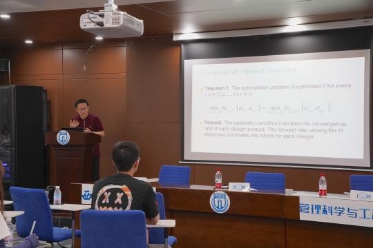 7月8日下午,肖辉教授为大家带来了有关“多目标决策问题的优化遗传算法”的学术交流讲座,以港口舶船的实际问题为切口为大家剖析多目标决策问题和遗传算法晦涩的数学内核,鼓励同学们顺应“新财经”的学科交叉趋势,持续学习理工科专业内容,为研究生学术研究打下坚实的学科基础。