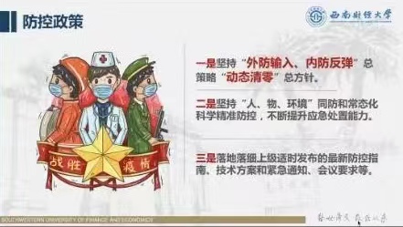 实施了严格的防疫政策,让各项活动得到合理有序的开展。不论是在学生进入校园时对健康码的检查以及核酸检测,还是在教学活动开始后,为防控疫情开展网课教学,开设疫情方面的安全教育,都保障了校园稳定,安全的发展。新生入校时志愿者的周到热情,后勤各方服务的保障,都让学生感受到了家一般的温暖,感受到加入西财这个大家庭的踏实和安心。相信在我们的星际娱乐场