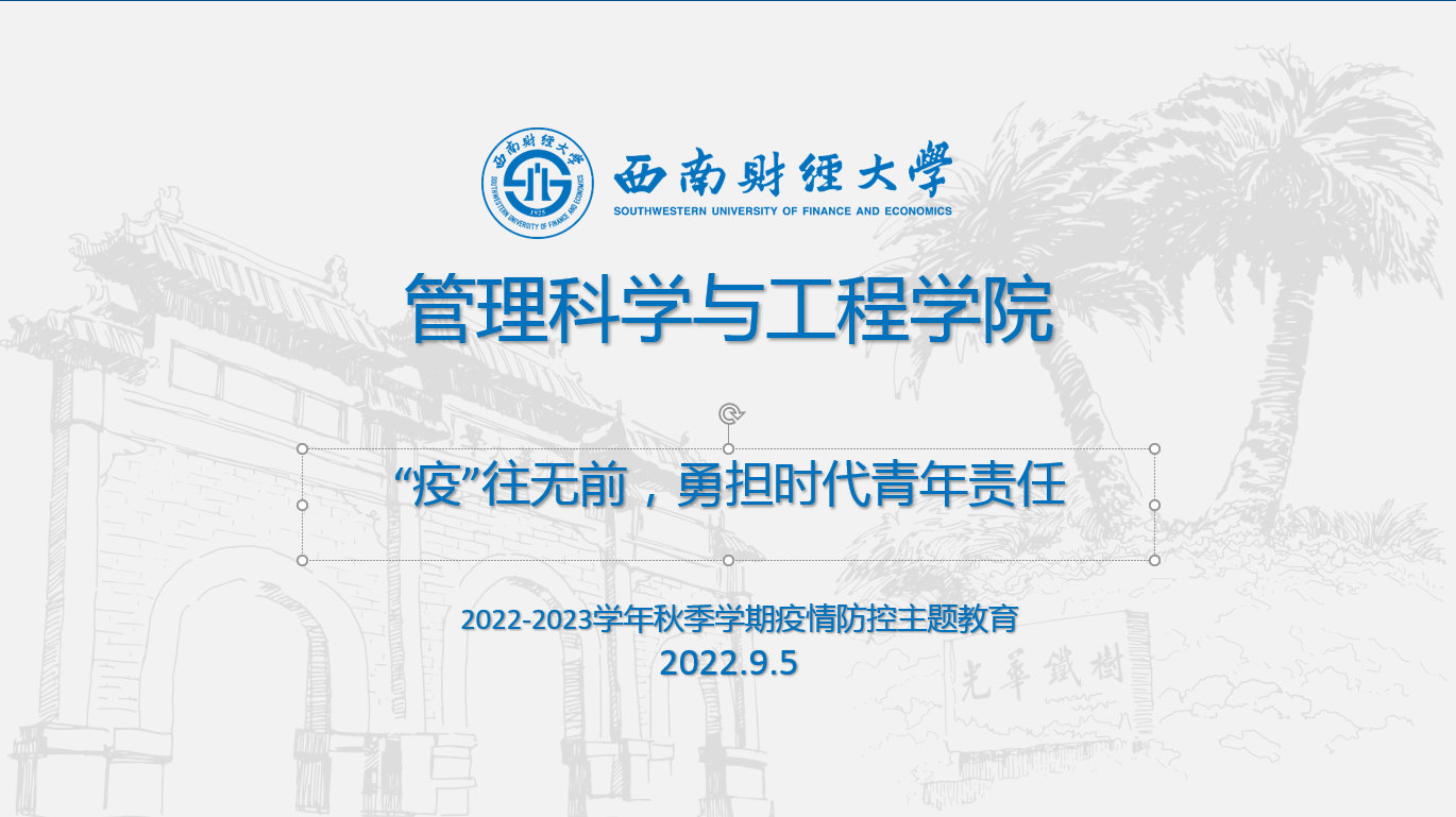 对疫情各方工作果断,精准,高效的领导下,全校师生必然可以众志成城,共克时艰,以实际行动为坚决打赢成都疫情贡献西财力量。