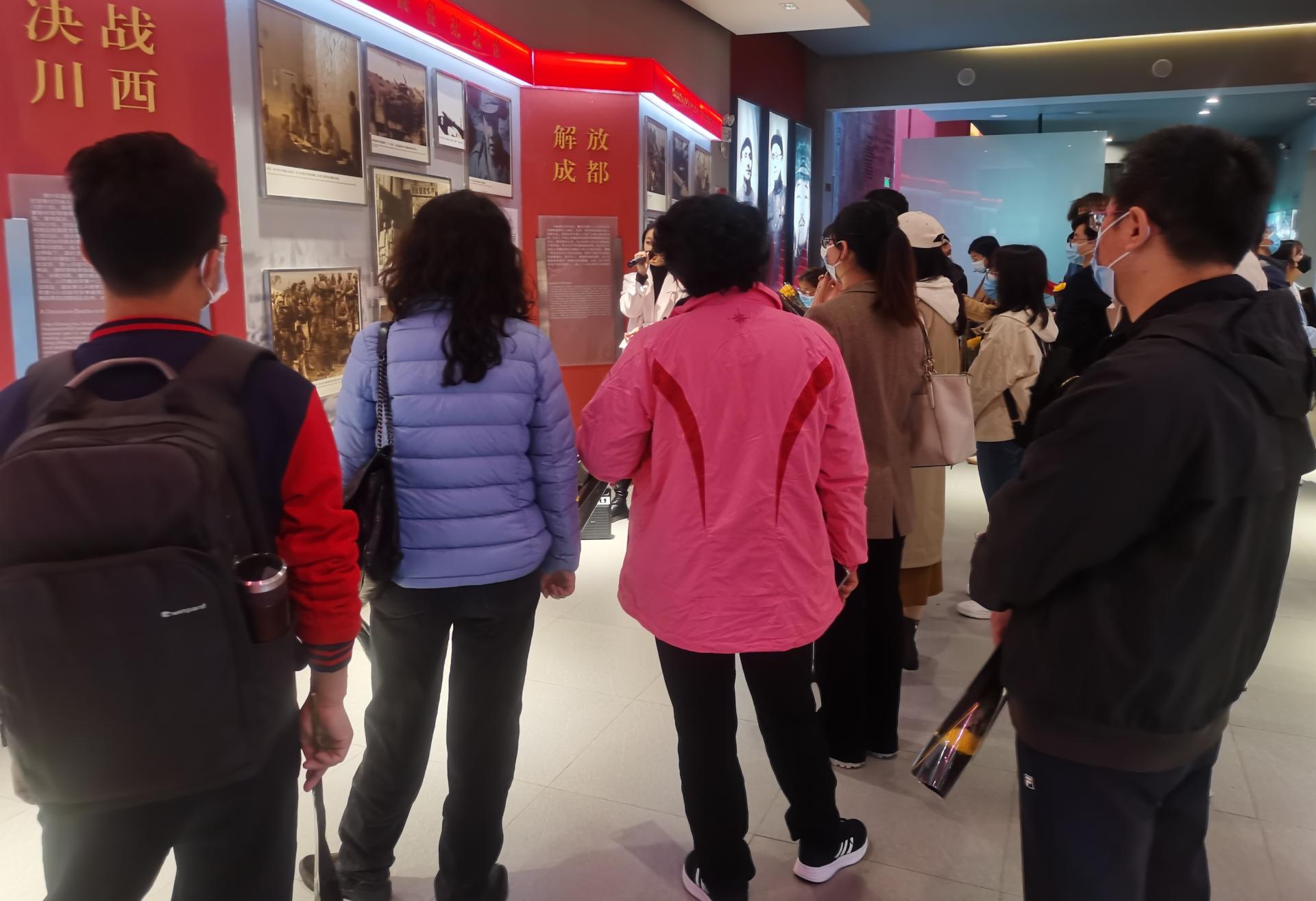 随后大家跟随讲解员走进纪念馆,详细了解解放军在成都战役中的光辉事迹,认真观看了成都战役纪念馆集中展示的文物、影像图片、书籍、烈士自传以及其他文献,通过不同载体、不同角度,全面了解了英勇的人民解放军征战西南、决战川西、解放成都的战斗历程,深刻感受到先烈们为革命胜利展现的不怕流血牺牲的崇高精神。