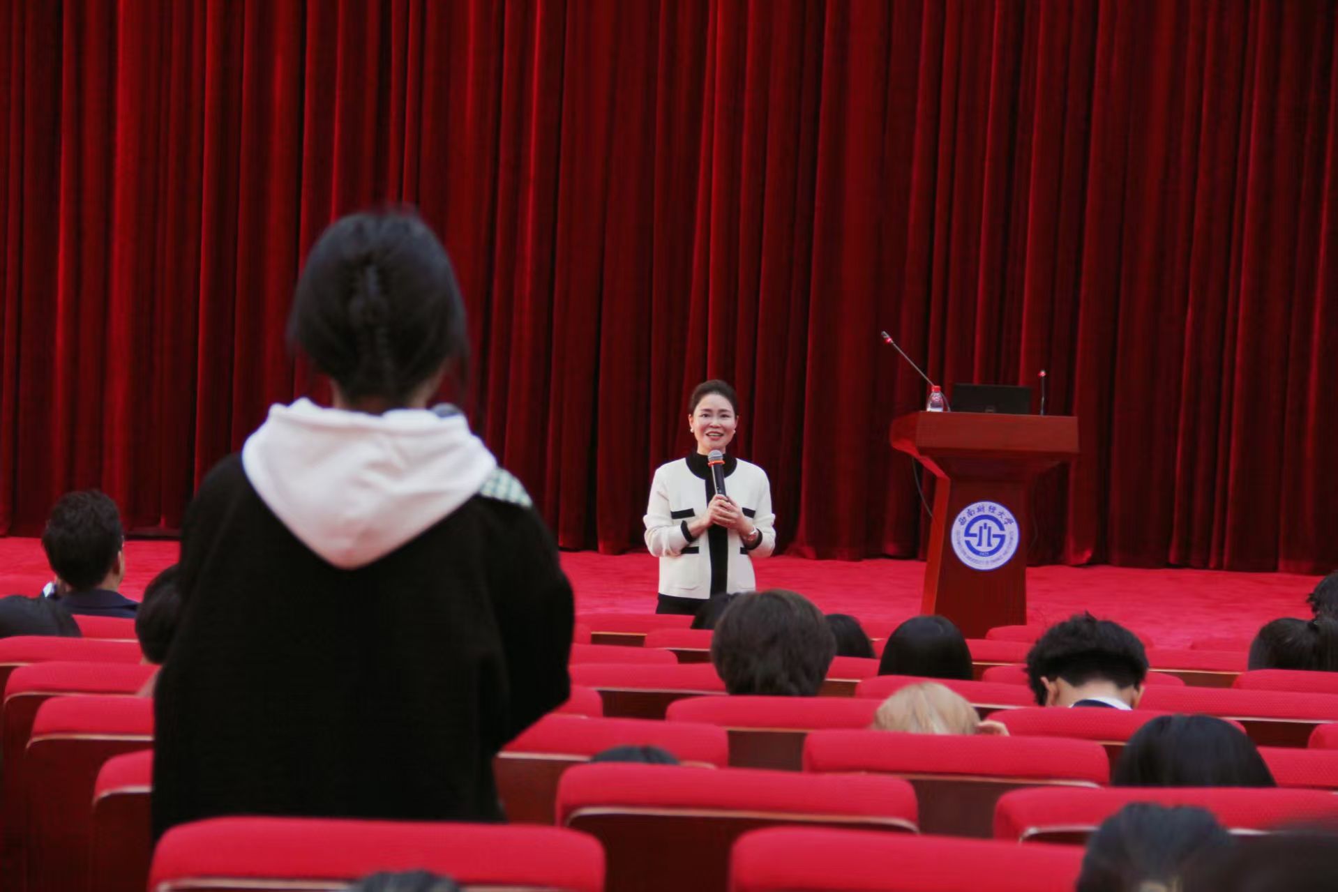 讲座中,刘希校友通过详实的数据分析,深入剖析了当前就业市场"冰火两重天"的发展态势。她提出"危机即机遇"的就业理念,建议同学们主动拥抱变化,通过"内部提升+资源链接"构建核心竞争力。针对学生普遍存在的职业规划困惑,刘希指出:“考研应当是基于职业发展的理性选择,而非逃避就业压力的避风港。”她结合自身持续跨界学习、不断突破舒适区的职业经历,勉励同学们树立终身学习理念,坚信"有实力就是有魅力"。