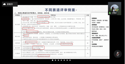 师生做了简单分享。她认为,参加比赛是一个锻炼自己的绝佳机会,每个参与项目的人都能获得超乎想象的极速成长。接着,她从宏观角度介绍了第七届大赛的主要变化,并从评委角度详细分析了备赛过程中需要关注的内容,尤其是赛道的选择对于项目的重要性,讲座内容“干活满满”。