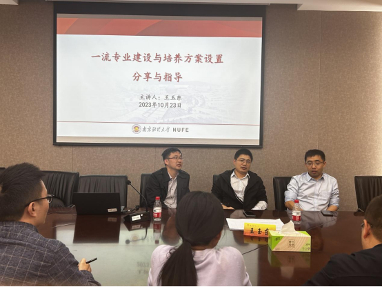 教师开展关于一流专业建设与培养方案设置讲座,讲座由余泳泽院长主持,陈启斐副院长、各系主任和院本科教育教学督导参会。