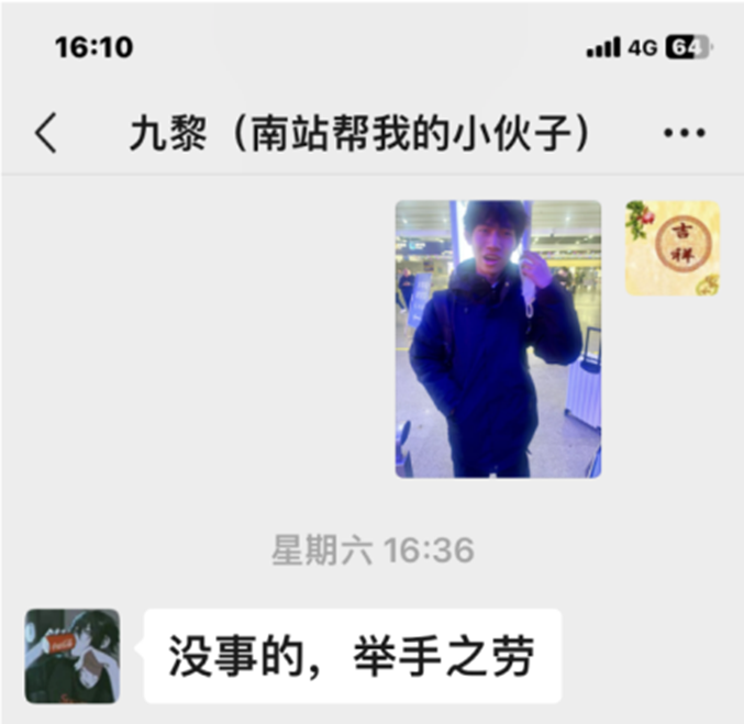 电子商务专业的一名大一学生。2月22日,在寒假归校途中,他在南京站出站口看到一位65岁左右的老人,出站时因行李过重摔倒后跌滑下楼梯。老人重重摔在地上,行李箱里的物品散落一地。面对台阶上摔倒的老人,当时周围路过的人都有些犹豫。